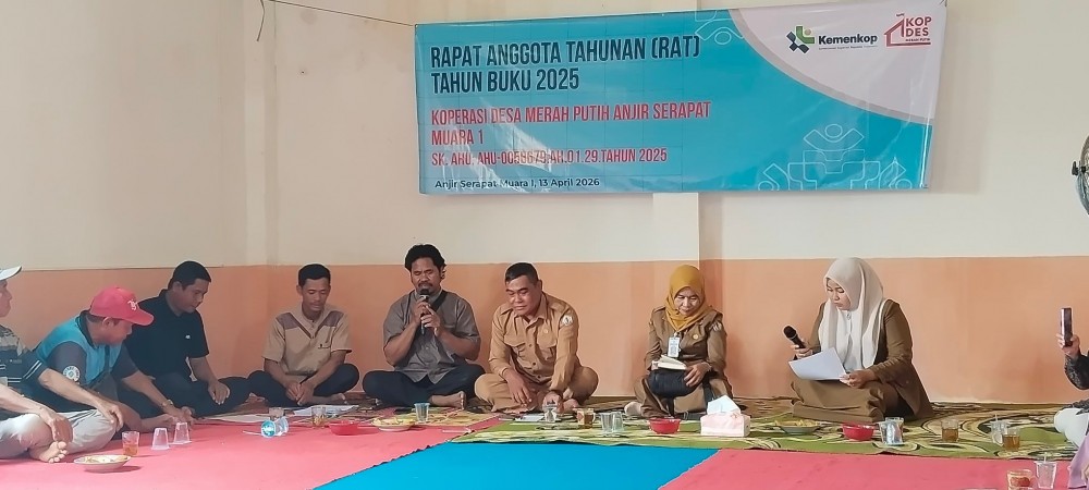 Pada hari Senin, 13 April 2026, telah dilaksanakan kegiatan Rapat Anggota Tahunan (RAT) Tahun Buku 2025 Koperasi Desa Merah Putih (KDMP) Anjir Serapat Muara I. Kegiatan ini berlangsung di Aula Balai Desa Anjir Serapat Muara I dengan dihadiri oleh pengurus koperasi, pengawas, anggota, serta tamu undangan.